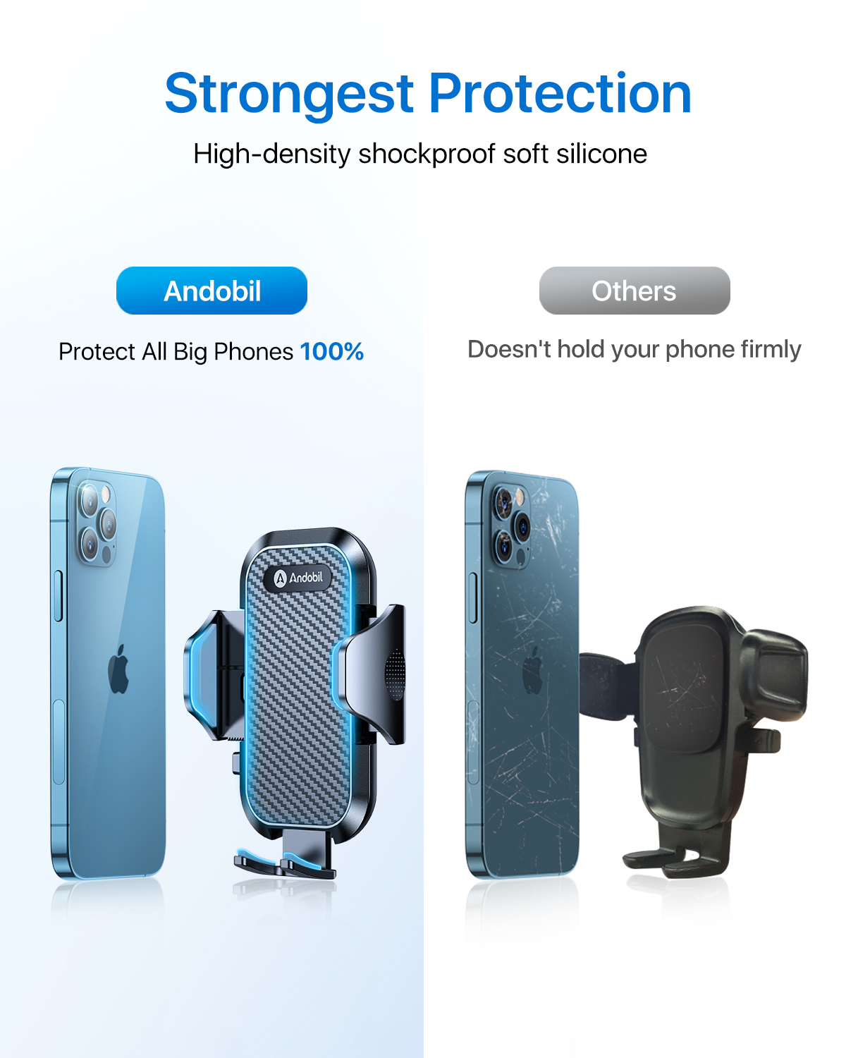 Please Note: Thickness of the phone case’s back should be less than 0.82in. It means fit with most of phone cases. You don't need to remove your thick case while using this phone holder car.