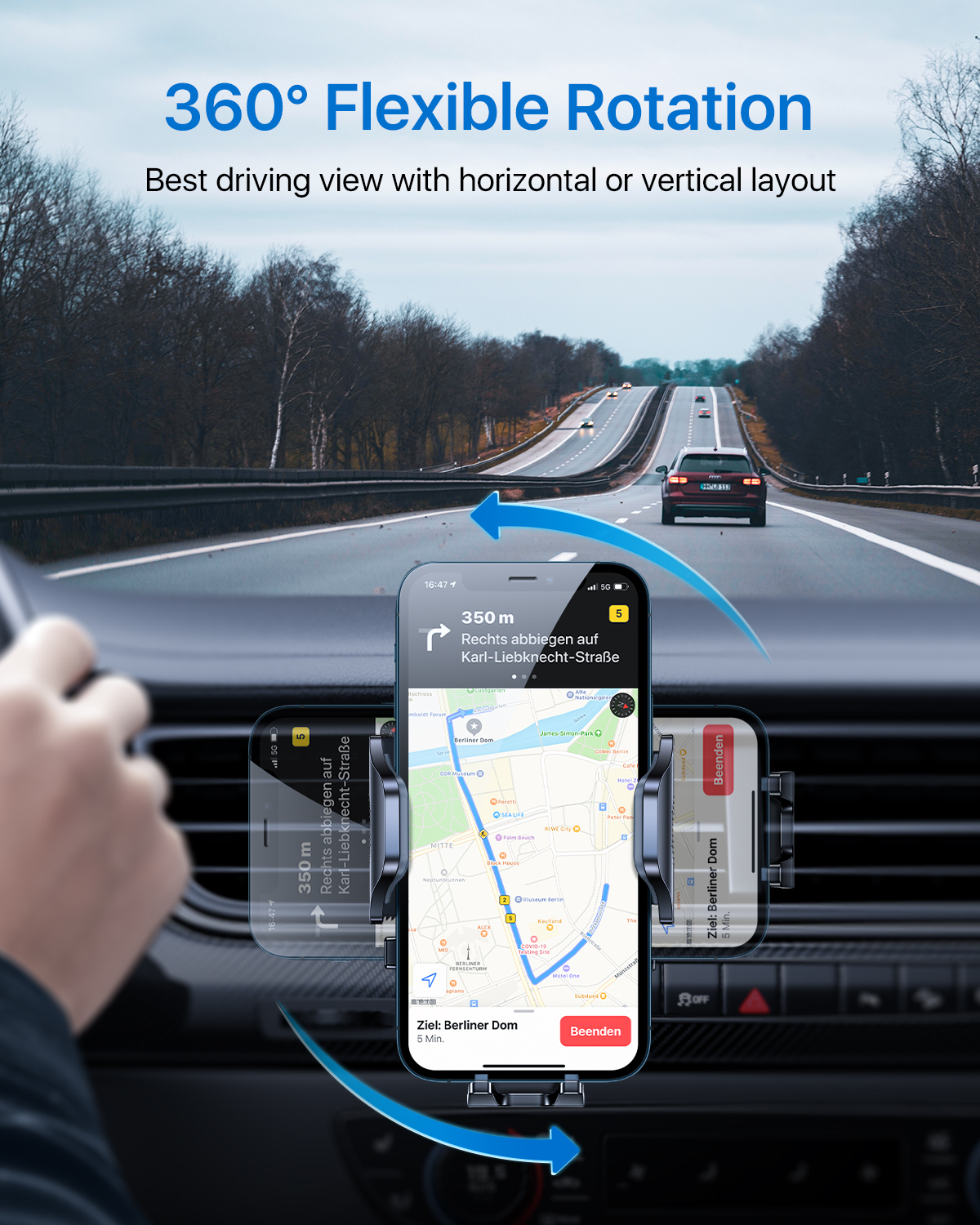 This car phone mount fits most phones from 4” to 7”. It’s compatible with iPhone 13 /13 mini/ 13 pro/ 13 pro max/ 12/ 12 Pro/ 11/ 11 Pro/ 11 Pro Max/ 8 Plus/ 8/ X/ XS max/ XS/ XR/ 7 Plus/ 7,